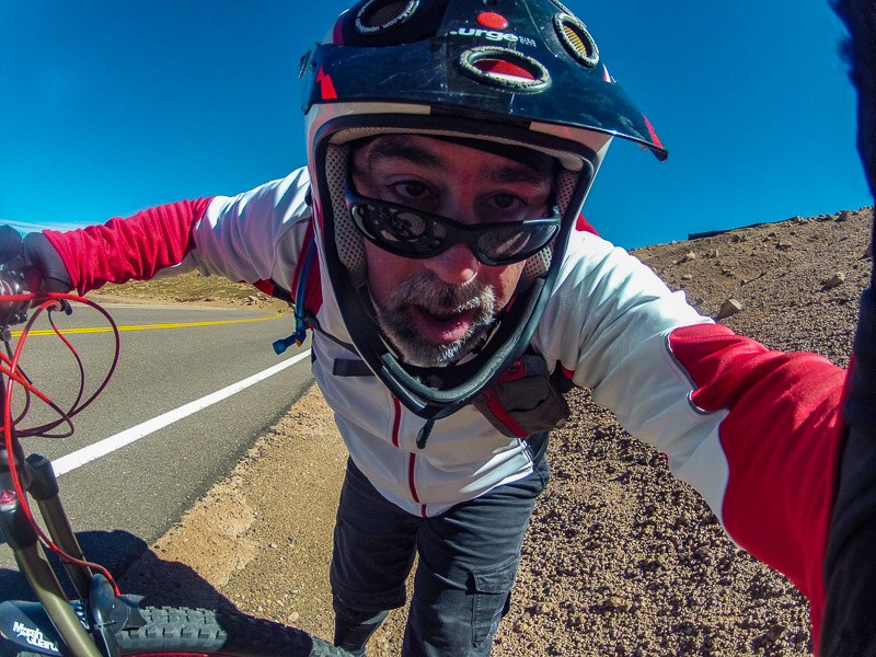 Adjusting the GoPro on top of Pikes Peak at 14,114 feet above sea level!