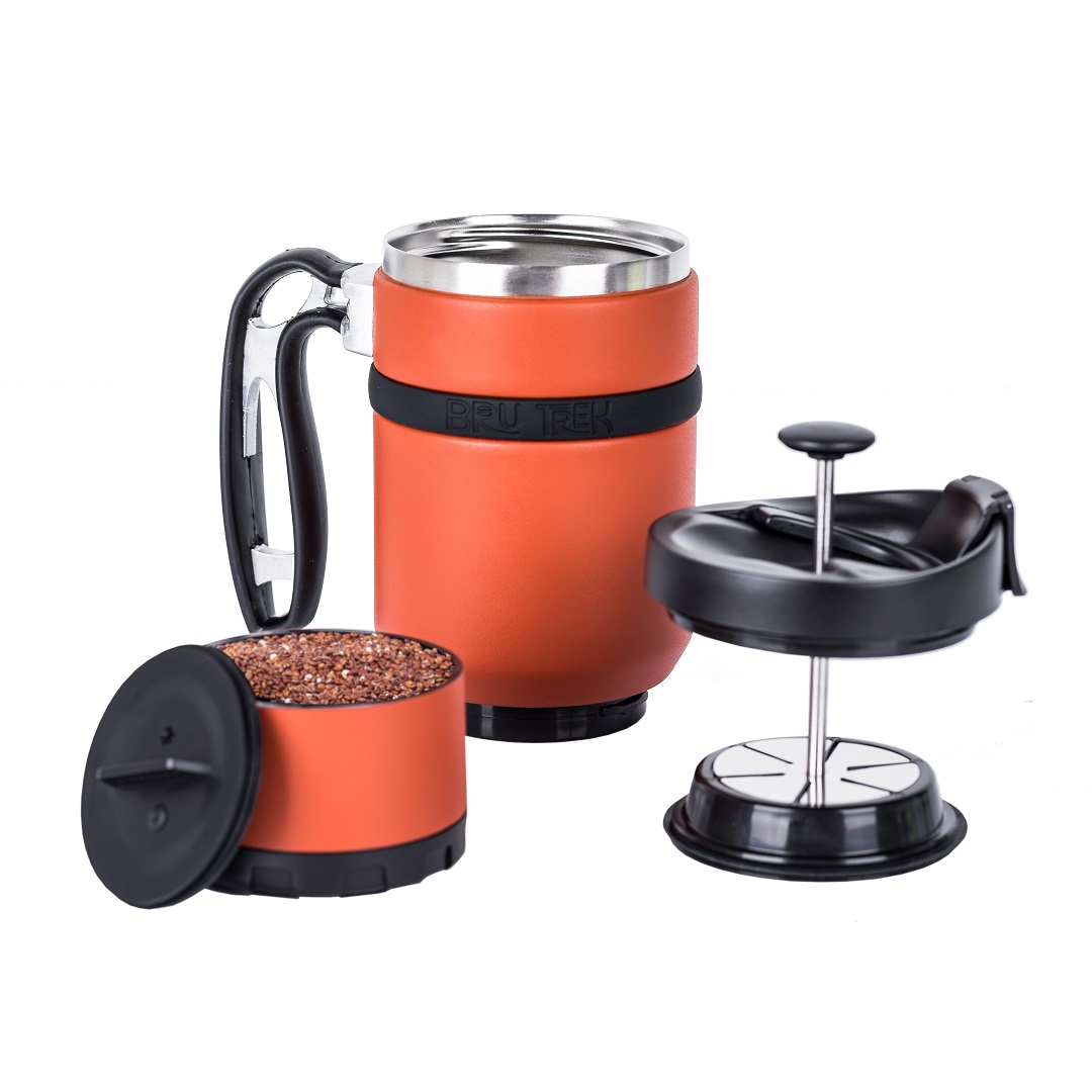 However, we can consider ourselves lucky over Grandpa’s generations that technology has given us even a better way to press coffee. One such Press is made by BruTek. It works well, and the process is the same as with a French Press brewer. Moreover, when you are ready to drink, instead of pouring yourself a cup, drink from the Double-walled Press! It works great for any time use, whether you are camping, traveling, at home, on the road, or in your office. It also works great for those who love to travel. Even if you are not really into coffee and prefer tea, the travel press also works great.