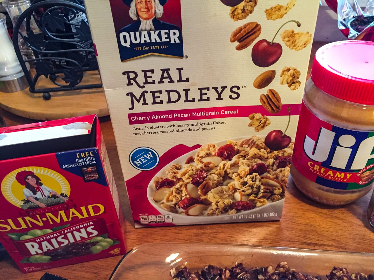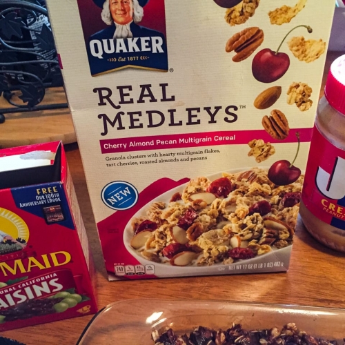 - 4 cups Quaker Real Medleys Cherry Almond Pecan Cereal