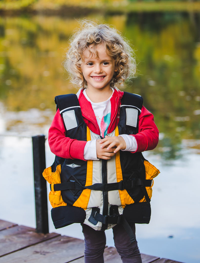 Every recreational vessel must have at least one personal flotation device (PFD) that is U.S. Coast Guard (USCG) approved and of the proper size for each person on board – including kayaks. Kids under six years old must wear a USCG approved life jacket at all times. For kids between 30-50 pounds, Stearns Puddle Jumper Life Jackets are the way to go and are USCG approved. When looking for kids older than 6, look for a life jacket that is not bulky and doesn’t get int he way of paddling.