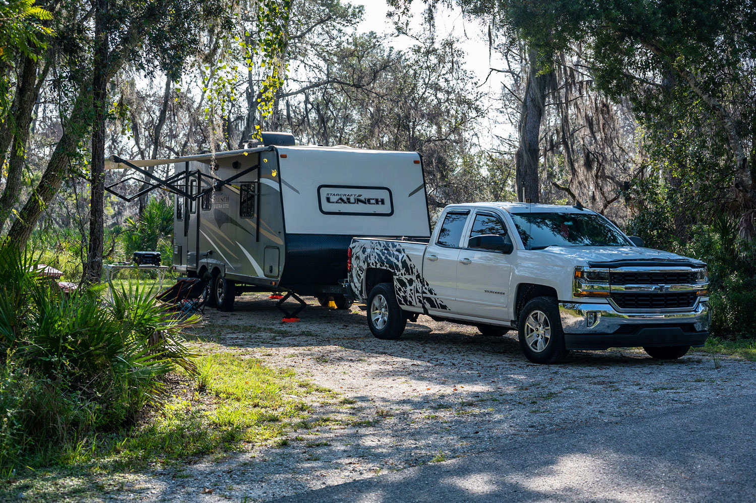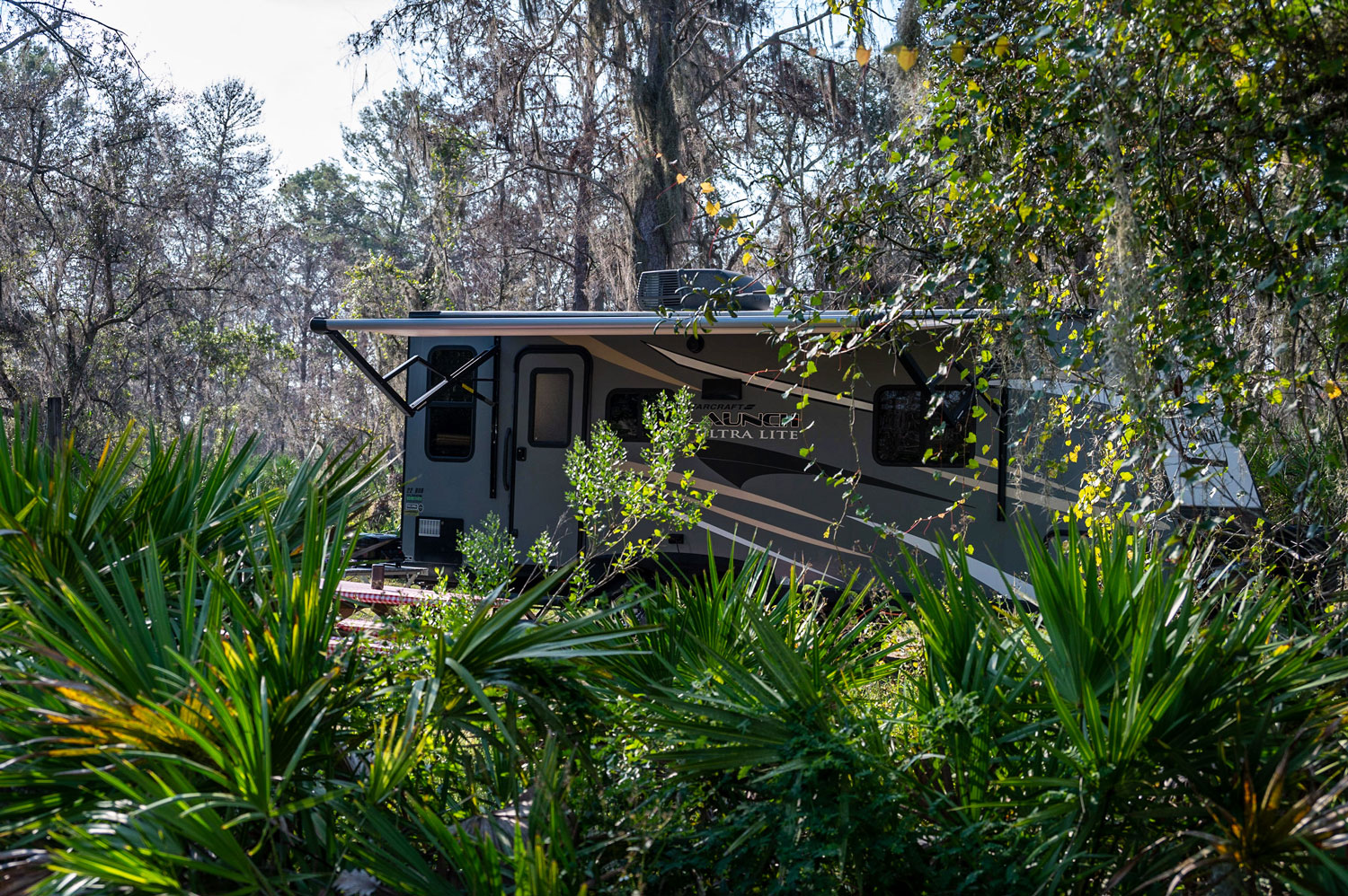 We loved this place. We were in Site #9 right next to the trail/path down to the lake. Some reviews mentioned the drag strip miles away, and while you can hear them in the distance him you really try), they are so far away you don’t really notice them. The park was clean, easy to get into and the hosts were awesome. Even enough trees to hide your neighbors. We camped at Lake Manatee State Park in a Travel Trailer.