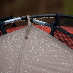 Water drops on the aquaphobic surface of the tent