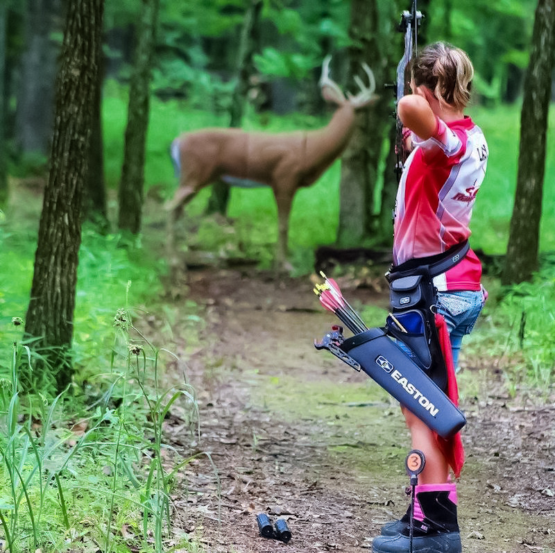 3D archery is very similar to Field archery, except instead of target bails, life-like 3-dimensional animals are spread over a course connected by a trail over undulating terrain. Everything else is virtually the same.
