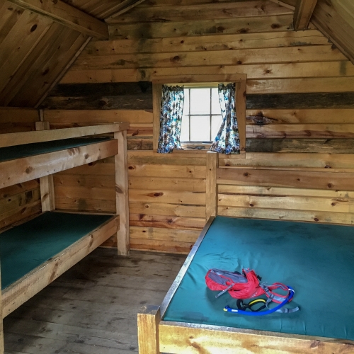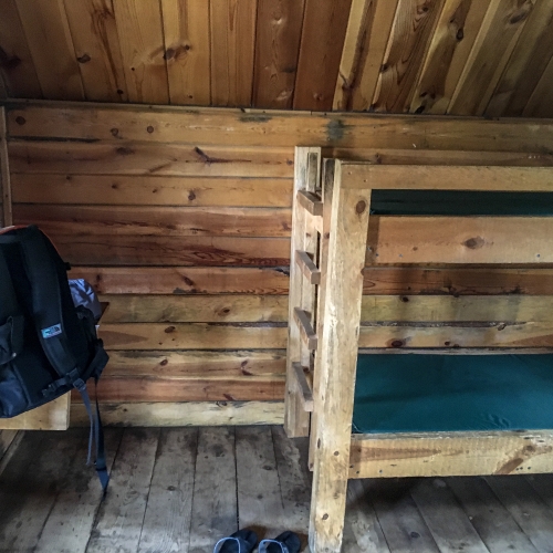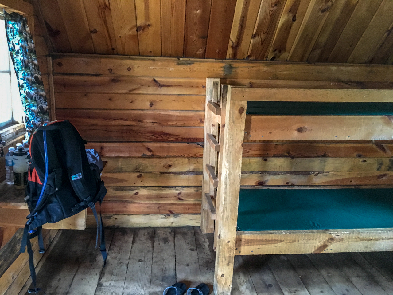 This cabin’s amenities were simple; a wooden box to keep us dry and warm, bunks with a 1/2″ pad, a picnic table, a grill, and a firepit. That was it, nothing fancy, but home for the night.