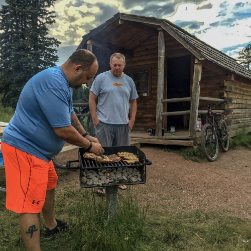 As mentioned, our route took us on dirt roads, doubletrack and singletrack which ran through some fantastic scenery. This was the shorter of the two days and led us in a loop around a small peak to the cabin all at 9,200 feet above sea level. There are many places in Colorado were these old cabins still are used for the stray and weary. Some of these cabins were built for the Cowboys to use when moving cattle some for the railroad workers bringing out silver and gold. A lot of them have an interconnected trail system linking them to each other so that hikers, bikers and even snowshoers can create trips that utilize them. Today these trips are called Hut to Hut Adventures, back in the day they were called a lifesaver!
