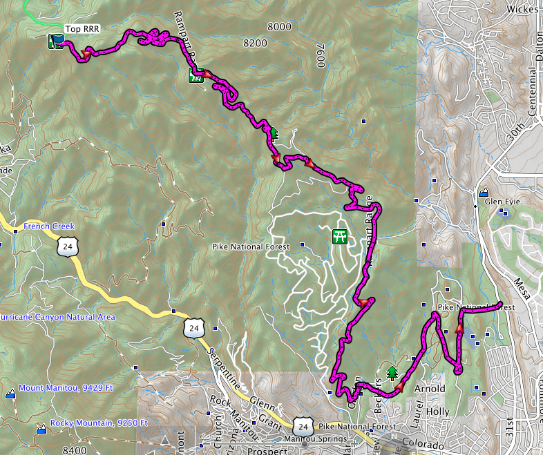 The 3,800-foot descent into Garden of the Gods – 13.2 miles + 645 ft climbing.